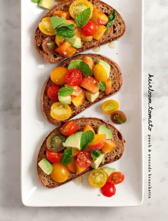 Recipe by Love and Lemons at https://strong-nights.today/tomato-peach-avocado-bruschetta/%3C/div%3E%3Cdiv