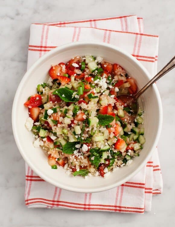 This Strawberry Tabbouleh recipe is from The Sprouted Kitchen Bowl + Spoon by Sara Forte. Full of color and lightly sweet, it's perfect for a summer picnic.