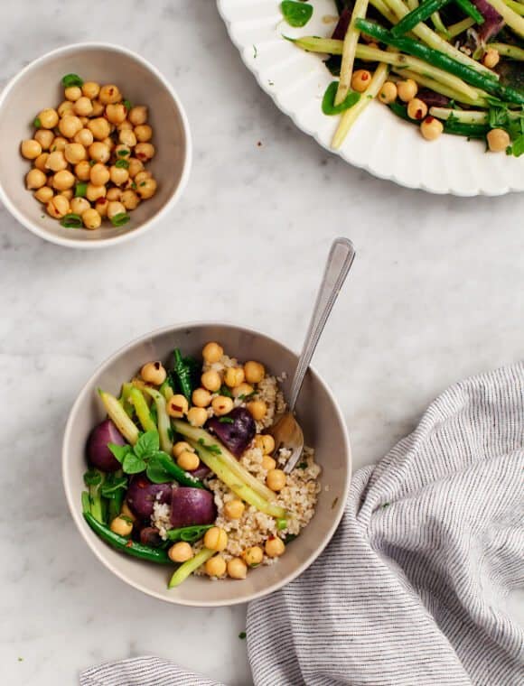 Optional: add cooked chickpeas, a (cooked) grain, and/or a few soft-boiled eggs.