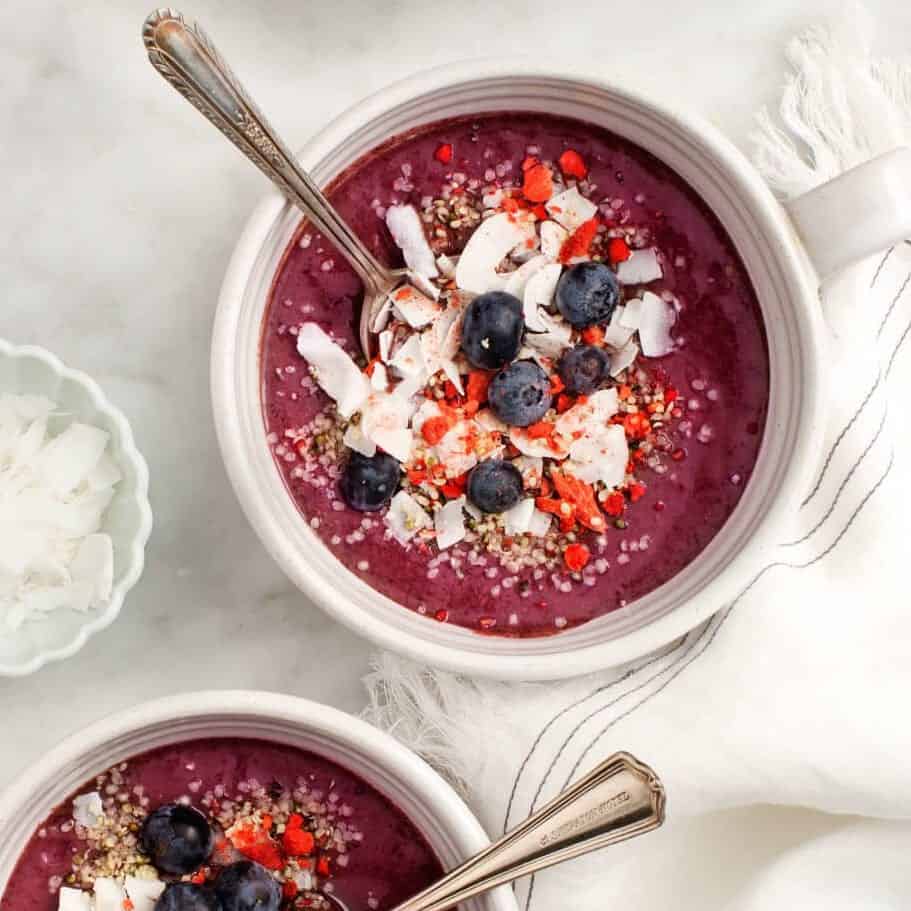 This easy smoothie bowl recipe makes a beautiful and delicious antioxidant-packed breakfast! It's healthy, vegan, and gluten-free: the perfect way to start your day.
