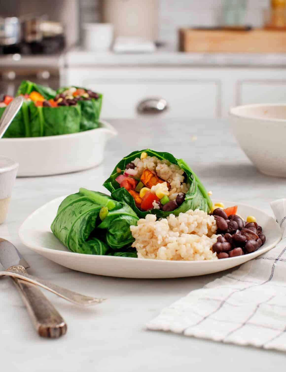 These vegan collard green wraps are fun, healthy, and easy to make! Stuff them with these burrito fillings, or see the post above for more filling ideas.