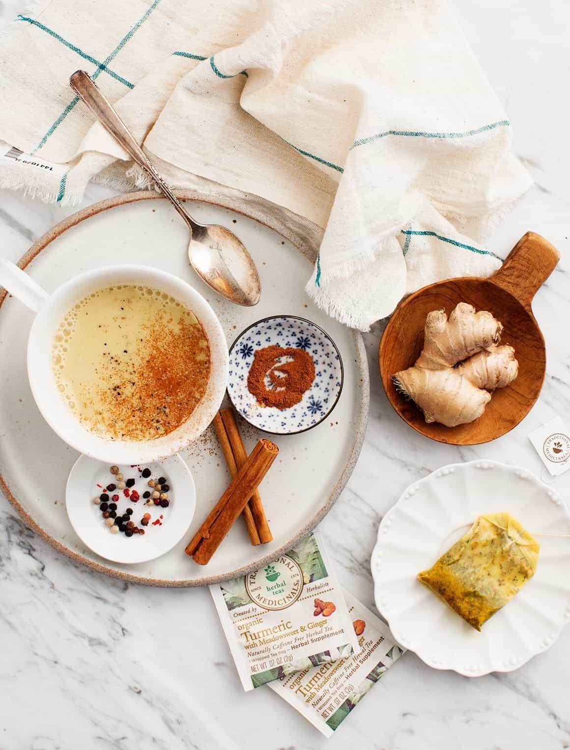 *You could also try using 1 teaspoon ground turmeric and 1 teaspoon freshly ground ginger - steep it with the milks and then strain it before serving.