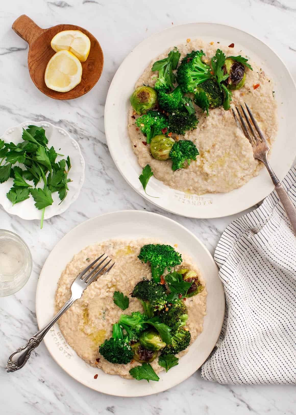 This recipe is from The First Mess Cookbook by Laura Wright and is reprinted with permission from the publisher. I used broccoli and Brussels sprouts here, but feel free to top this creamy quinoa risotto with your favorite roasted veggies.