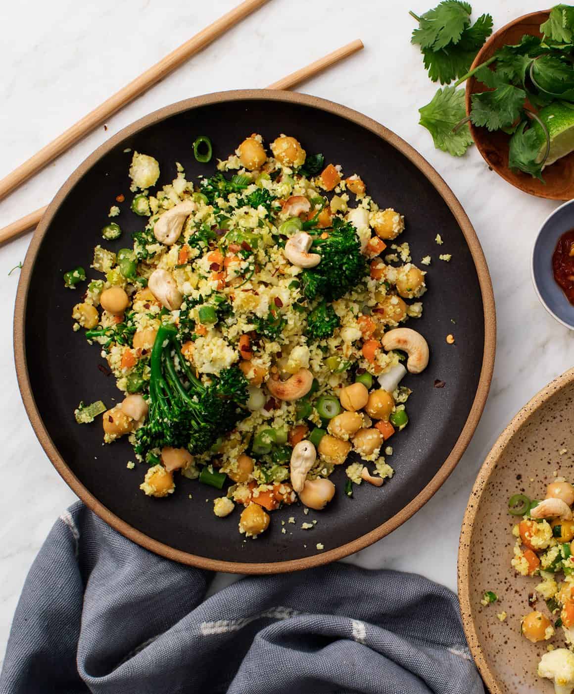 This Cauliflower Turmeric Fried Rice is a light & quick weeknight dinner. Though the rice is packed with flavor on its own, the cardamom yogurt sauce really kicks things up a notch here.