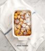 Scoop the mix into a greased baking dish or individual ramekins.* If you are using fresh bread, you don’t need to let it sit, you can pop it right into the oven. If you’re using bread that’s a little bit stale, let it sit in the fridge for 30 minutes or a few hours.