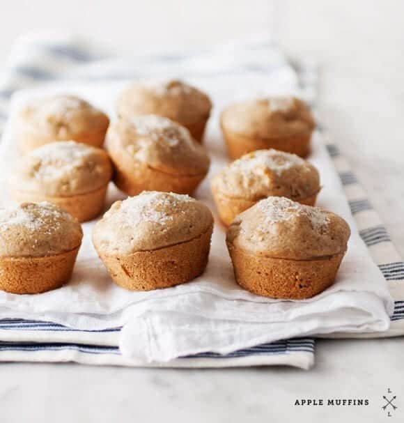 These 30-minute apple muffins are perfect for fall! Juicy diced apples mix with toasty nuts and warm spices to make them wonderfully moist and full of fall flavor.