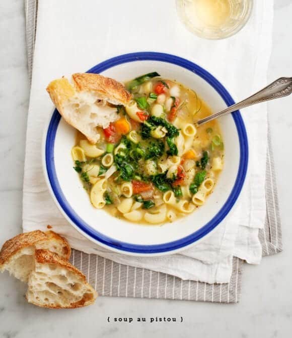 Taste and adjust seasonings. Finish with generous squeezes of lemon, grated parmesan cheese, and a spoonful of pistou, per bowl. Serve with crusty bread.