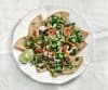 Make the taco "meat": Combine the TVP, ½ cup water, soy sauce, olive oil, cumin, coriander, garlic powder, and onion powder in a small saucepan and bring to a boil. Turn off the heat and let sit for 10 minutes.